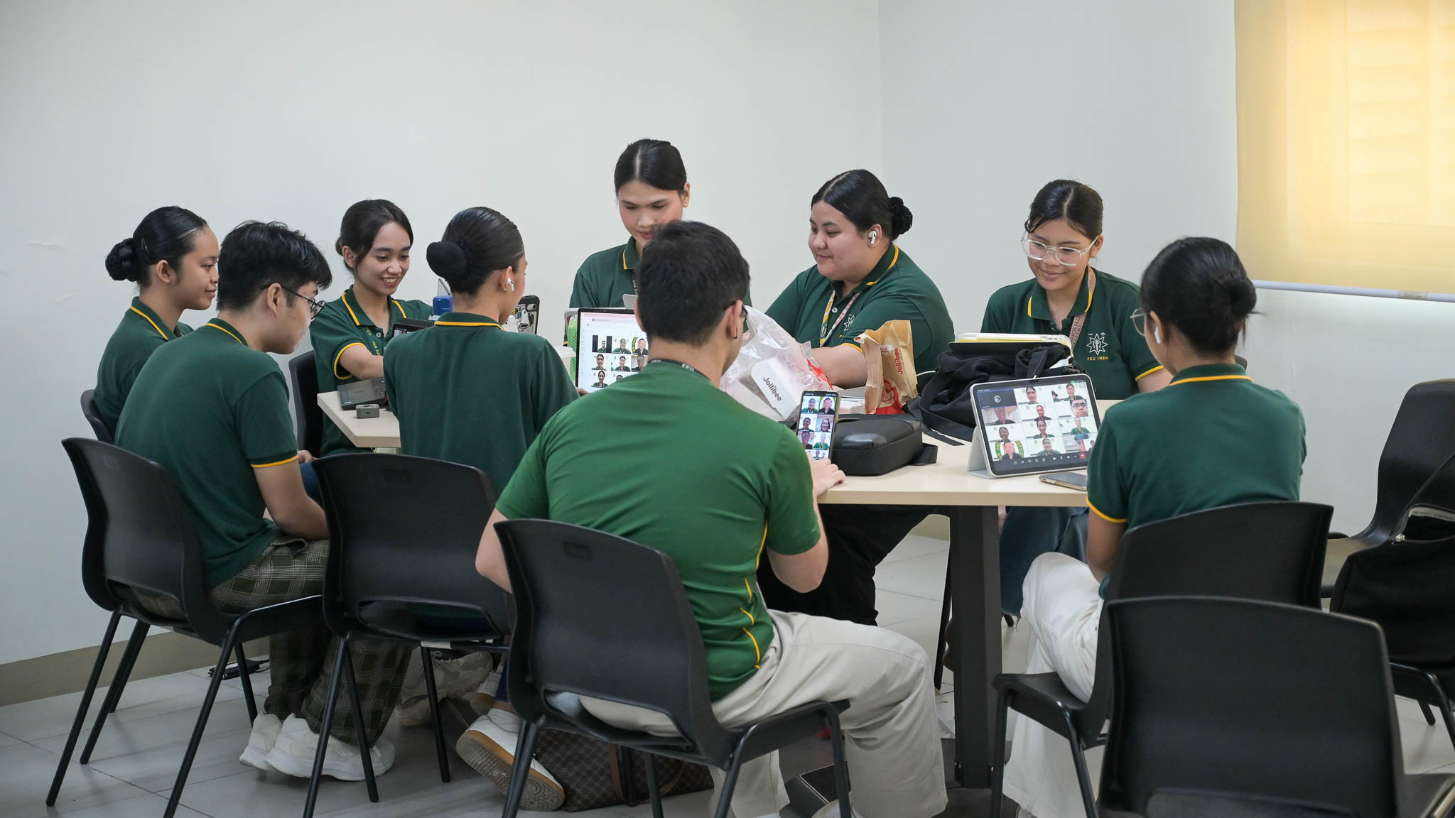 Students doing a group study at the Shared Blended Learning Room at the FEUture Center.